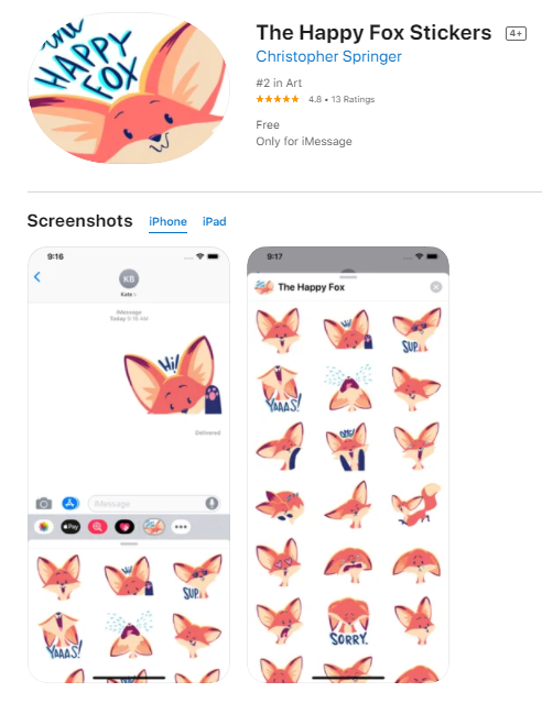 귀여운 여우 아이폰 스티커 앱입니다.