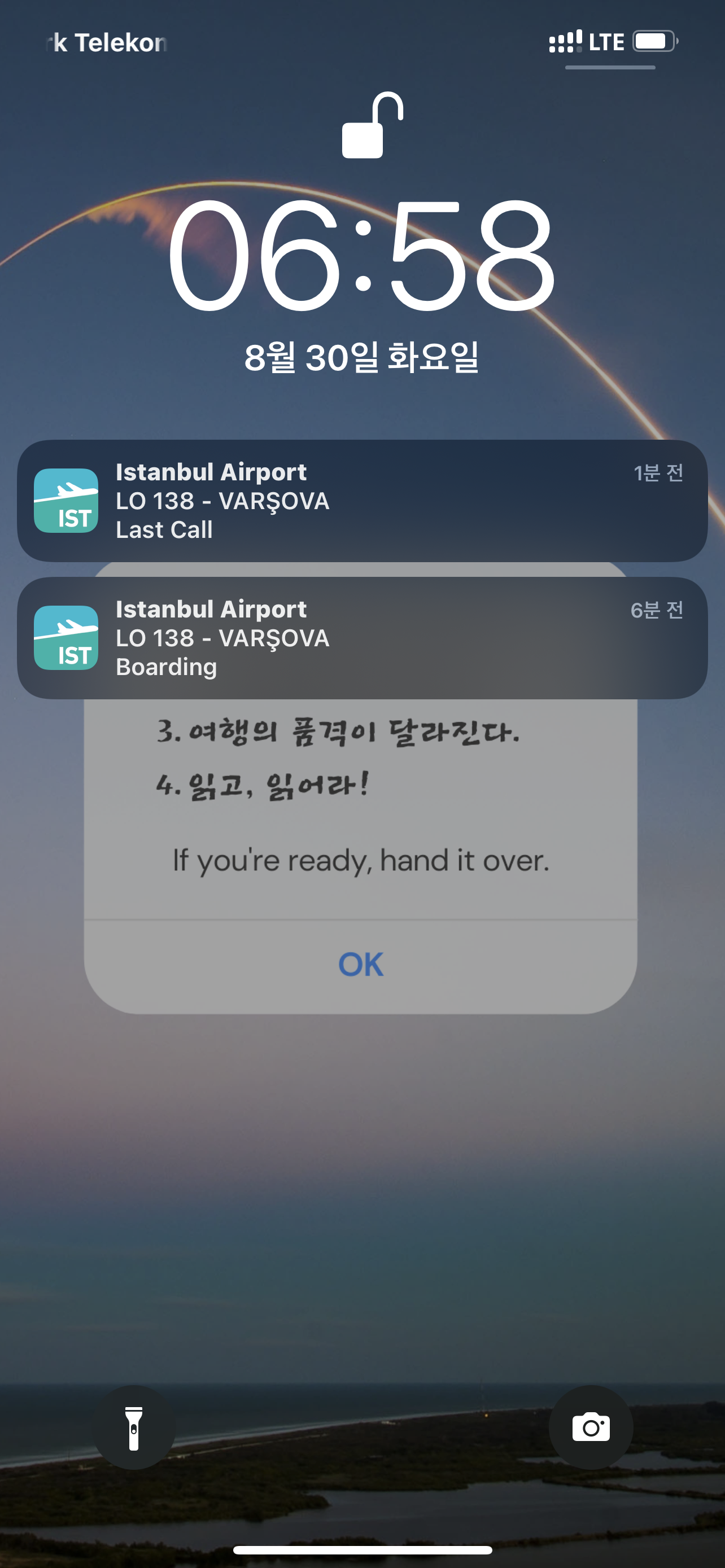 노티 알림은 덤입니다. 이번 여행에서 이스탄불공항은 2번을 이용했습니다. 다른 승객보다 지연사실을 미리 알게 되어서 게이트 앞에 줄서는 불편함을 없었습니다. 정시 출발하는 줄 알고 줄서있는 승객들을 보면 미안하기 까지 했습니다.