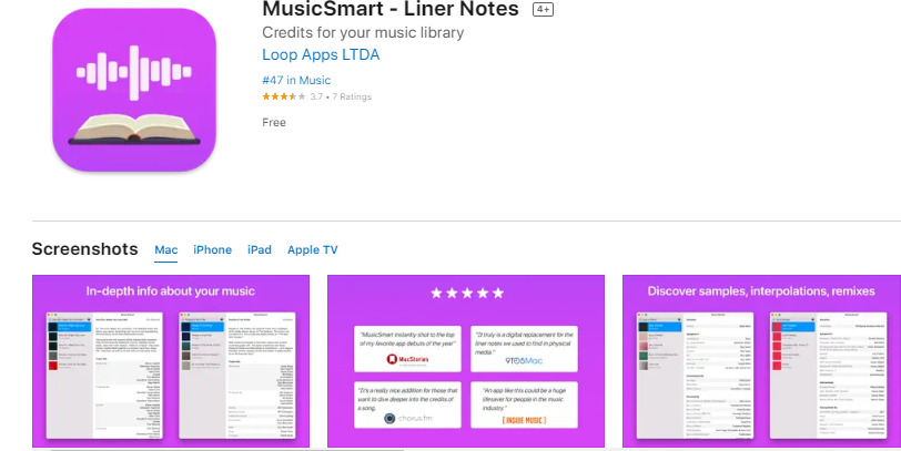 MusicSmart는 디지털 앨범용 라이너 노트를 제공합니다. Apple Music 및 음악 앱의 모든 타이틀과 호환됩니다. Spotify에서도 작동합니다. 앨범, 노래 또는 아티스트에 대한 모든 종류의 정보를 볼 수 있습니다.