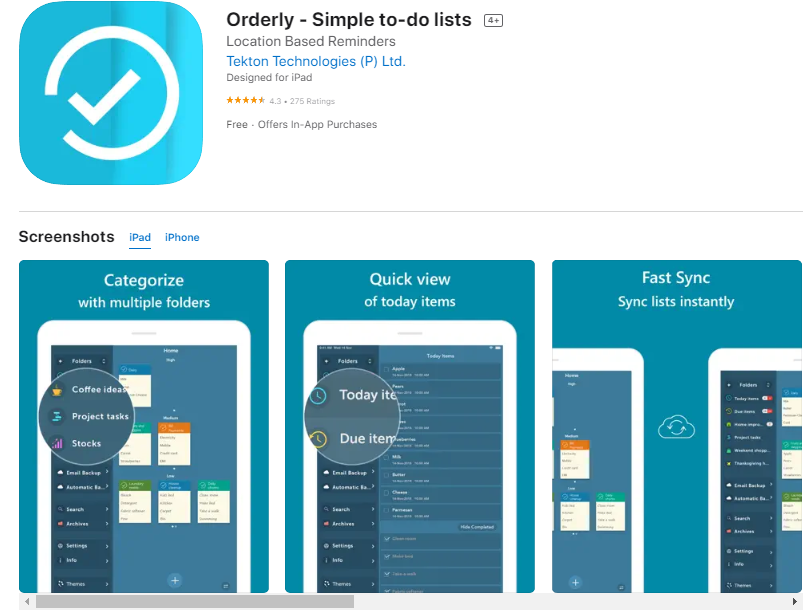 원활한 클라우드 동기화가 특징이며 "위치 기반 알림"이 함께 제공되어 사용자가 특정 시간에 할 일을 절대 놓치지 않도록 하는 매우 쉬운 할 일 목록 앱입니다. 위치. 고유한 시각적 레이아웃을 사용하면 개별적으로 열지 않고도 할 일 목록을 엿볼 수 있습니다.