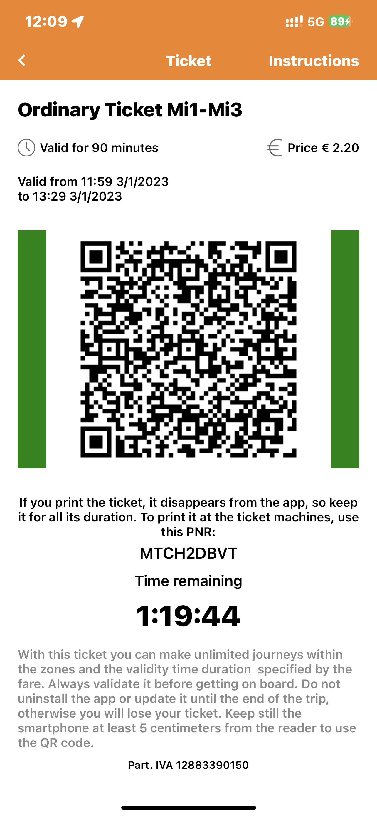 ATM Milano 의 이용팁을 드리자면! 한 명이 2-3명의 티켓을 동시에 구매할 수 있습니다. 활성화면 한다면 버스는 특별한 조치가 없지만, 지하철의 경우는 한 명씩 QR 태그를 해서 입장시켜 주면 됩니다. 이런 것이 번거로워서 생성된 QR을 스샷을 찍어서 일행에게 공유를 하면 되겠다 하고 생각하시겠지만!